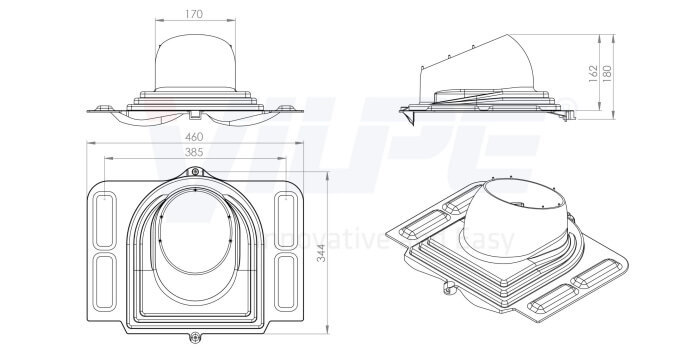 • Комплект: проходной элемент, резиновый уплотнитель, кольцо гидрозатвора, герметик на безуксусной основе, шаблон, монтажная инструкция, 2 набора крепежа.