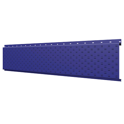 Линеарная потолочно-стеновая панель с ПЕРФОРАЦИЕЙ для вентиляции цвет RAL5002 Синий Ультрамарин применяется в качестве софитов для подшивы крыши, наружной и внутренней отделки потолков, стен, фронтонов фасада дома в Павлодаре.