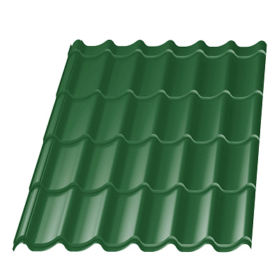 Металлическая черепица Меркурий цвет RAL 6002 Зеленый Лист имеет профиль внешне на кровле напоминающий классическую керамическую черепицу. Меркурий — это обновленный аналог профиля металлической черепицы для кровли крыши. Форма профиля имеет богатый внешний вид напоминающий небольшие набегающие волны. Лучшие показатели герметизации сделали профиль Меркурий гарантом стабильной и долговременной службы на крышах в Павлодаре. Данный профиль отличается не только своим качеством и практичностью, но и благородным внешним видом.
