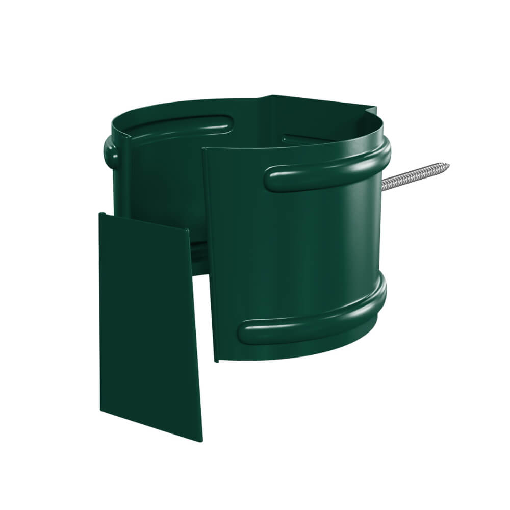 Держатель трубы водостока d100 на кирпич RAL 6005 Зеленый металлический - предназначен для фиксации трубы водосточной на кирпичной стене здания. Держатели трубы изготовлены из цельного листа стали толщиной 0.6мм с двусторонним полимерным покрытием Пластизол методом штампования и вырубки, что придает дополнительную прочность и надежность всей конструкции.