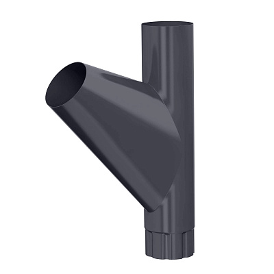 Тройник трубы водосточной d100мм RAL 7024 Серый Графит металлический - элемент водосточной системы, предназначенные для развода водосточных труб. Применяется в случае, когда к одному стояку подводятся трубы с двух воронок. Тройник имеет обжим с нижней стороны и устанавливается аналогично водосточной трубе. Широкий раструб для входа трубы сбоку позволяет подводить трубу под разным углом.