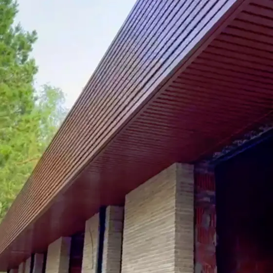 Готовый объект демонстрирует, насколько гармонично кубообразная декоративная рейка 60×37 мм в цвете под дерево «Кедр Тёмный» 3D покрытие SteelArt вписывается в архитектуру частного дома. Материал собственного производства применён для подшивы кровли и потолочного оформления гаража, создавая аккуратный и современный вид. Тёплая текстура под дерево придаёт фасаду дополнительную фактурность, а качество покрытия обеспечивает долговечность и устойчивость к внешним воздействиям. Решение получилось одновременно практичным и эстетичным — стильный акцент, который подчёркивает общий характер дома и придаёт ему завершённый облик.